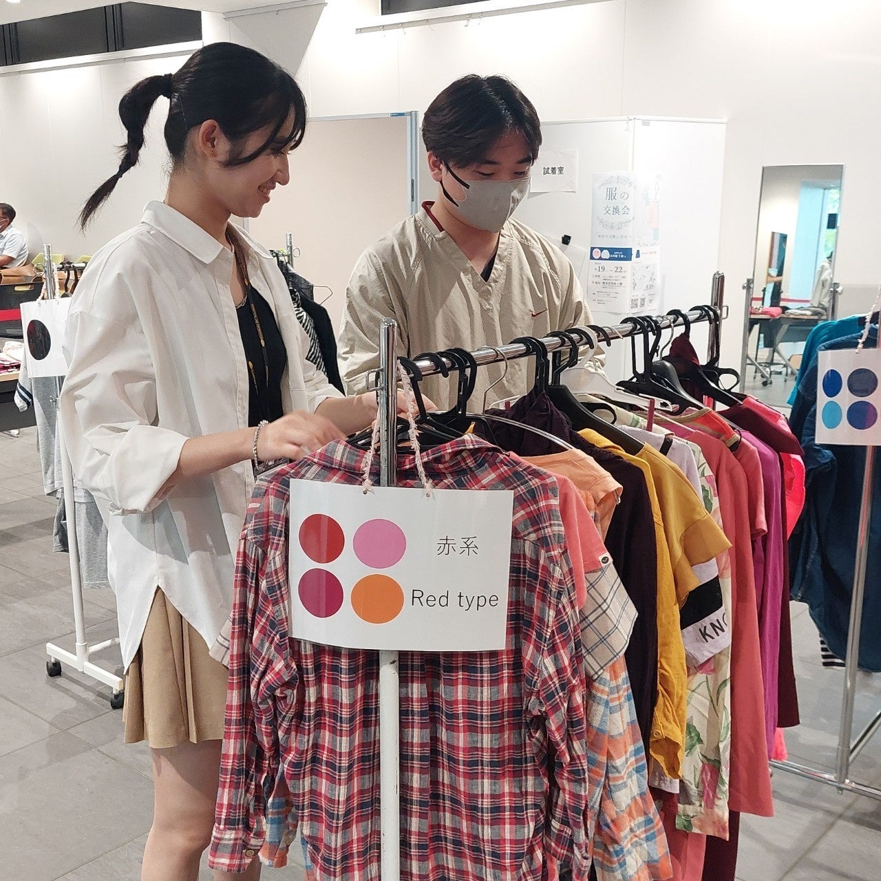 不要になった服と会場にある服を交換する『服の交換会』を開催。持参した服の枚数と同枚数の交換が可能で、「捨てる」ではなく、誰か譲り渡すことで楽しみながら服の廃棄を減らします。