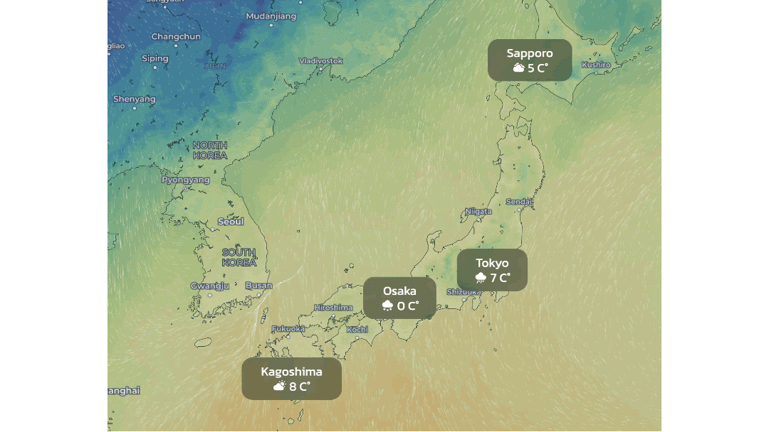 気象庁の風予報データ(メソ数値予報モデル風要素)をMapbox Weather Serviceで配信した際のイメージ