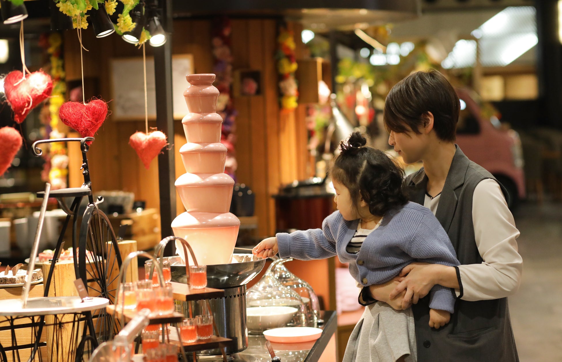 Family Fun Nightは、ビュッフェを堪能しながらエンターテインメントも体験できる「食べて、見て、一緒に楽しむ」をコンセプトにしたディナービュッフェです。ビュッフェ台には、彩り豊かな旬の食材やサステナブル食材を使用した料理が並びます。その他にも、マカロニチーズ、照り焼きミートボールなどお子さまに人気のメニューを取り揃えたキッズコーナー(※1)、お子さまに人気のチョコレートファウンテンや季節のフルーツをふんだんに使用したケーキが並ぶ充実したデザートコーナー、和食コーナーなど幅広い世代に楽しんで頂ける約40種類の料理をご提供致します。