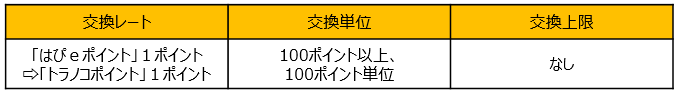 たまった「はぴeポイント」を以下の条件で「トラノコポイント」に交換いただけます。