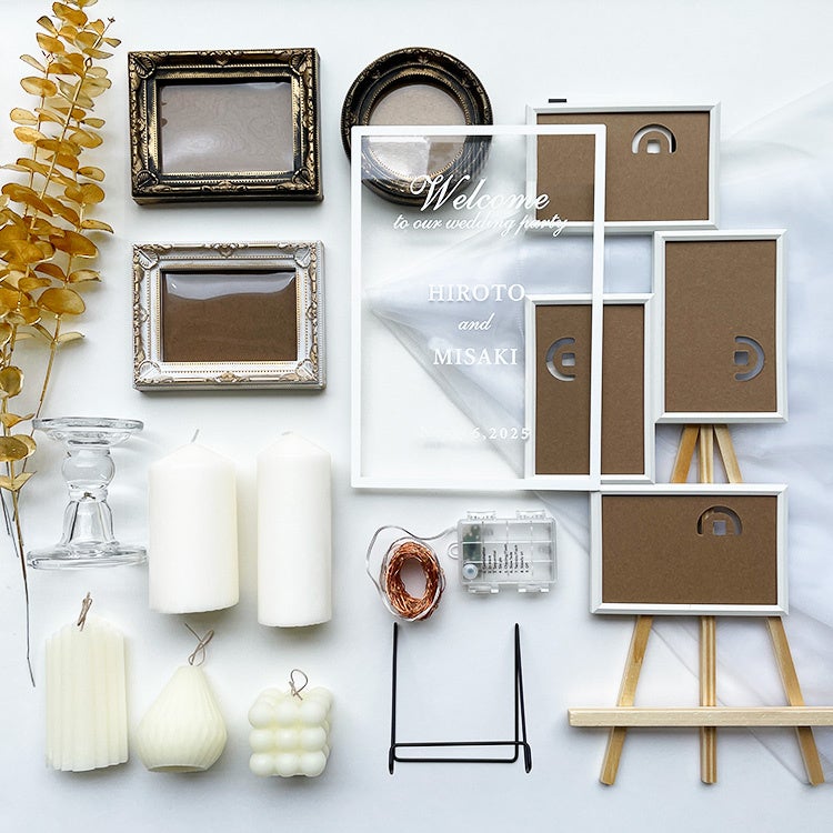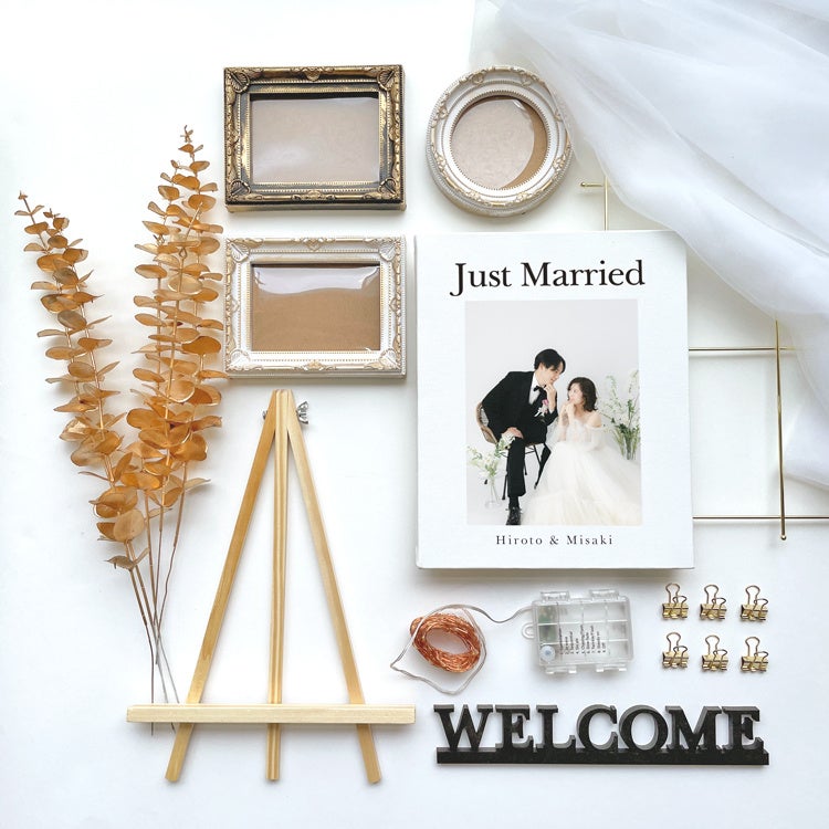 写真たてや、造花、イルミネーションライトなど、ウェルカムスペースに人気のアイテムがセットに含まれているため、自分が飾りたい写真を用意するだけでOK。