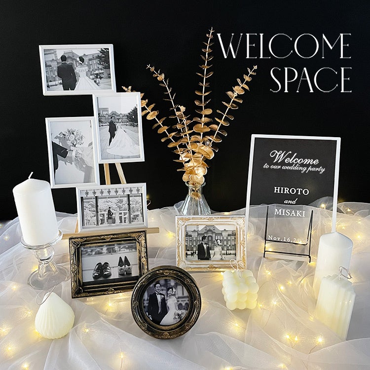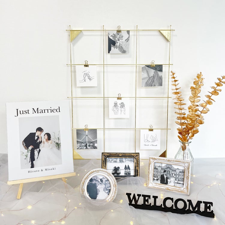 前撮りや、想い出の写真を飾るだけでお2人らしい空間に早変わりします。専用の木製イーゼルも付いているので、準備を忘れていたということが無く安心です。