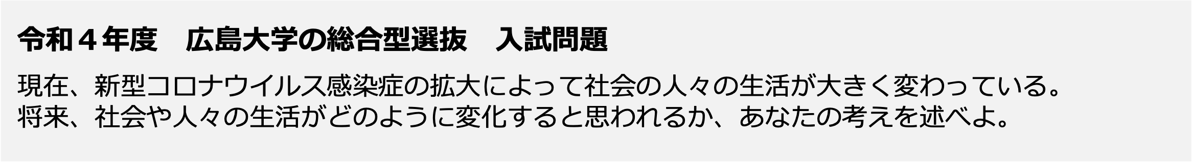 これからの社会はどうなるか、自分ので考え、自分の言葉で伝える必要がある→答えのない問題