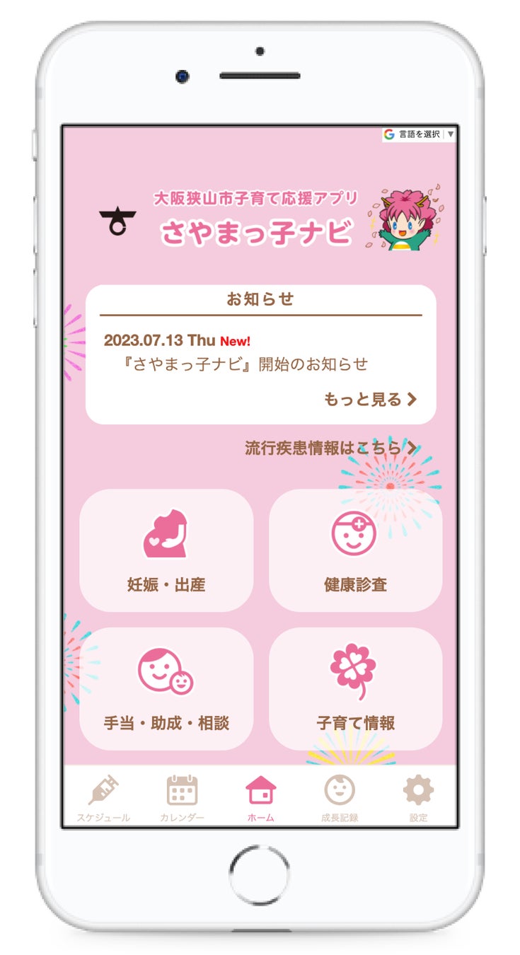 今後は、大阪狭山市からのお知らせを月齢・年齢にあわせてタイムリーに受信できる「メール配信・プッシュ機能」、成長グラフや乳幼児健診の記録など母子手帳の内容をマイページに記録できる「電子母子手帳 機能」、予防接種漏れや接種間隔ミスを防ぐことができる「予防接種スケジューラー」、「多言語翻訳機能」など、ICTを活用した子育て世代への継続的なサポートを実現します。