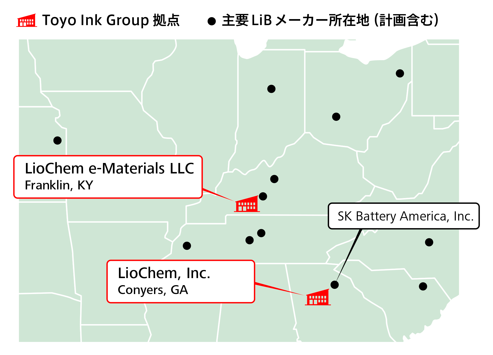 東洋インキSCホールディングス株式会社(代表取締役社長 髙島 悟、東京都中央区)は、リチウムイオン電池正極材用導電カーボンナノチューブ(CNT)分散体の北米第2拠点として、ライオケム・イー・マテリアルズ合同会社をケンタッキー州に設立いたしました。