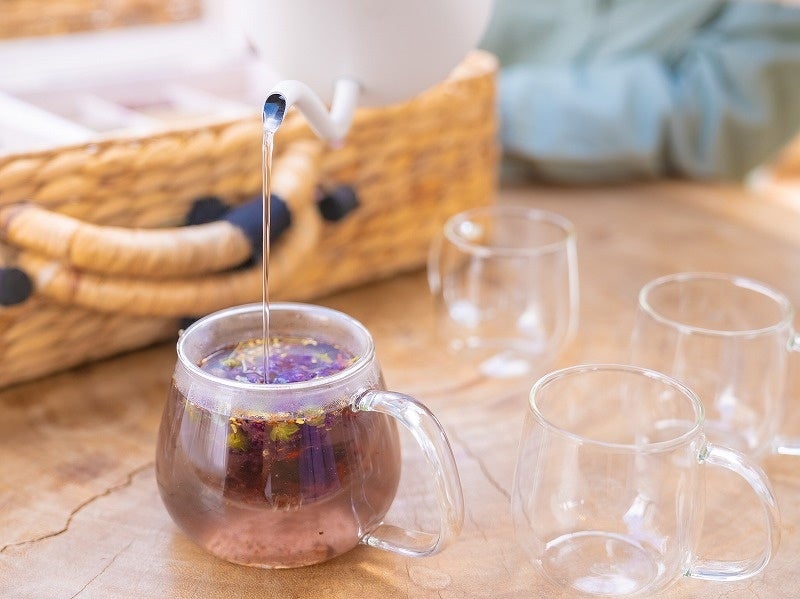数種類の花びら・ハーブからつくるオリジナルハーブティー。自分好みの香にブレンド、飲み比べも楽しめます。