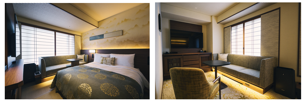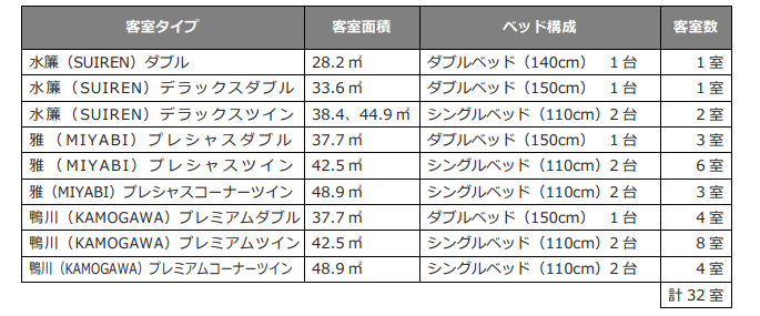 今回オープンする四条河原町温泉は、2つの異なるスタイルを持つ「新しい日本の宿」です。「四条河原町温泉 空庭テラス京都」は、京都らしい和の設えの寛ぎ空間を備えた102室の客室をご用意し、京都観光の拠点としてアクティブに旅をお楽しみいただけます。「四条河原町温泉 別邸 鴨川」は、32室のラグジュアリーな客室で、全室に自家源泉の露天風呂をご用意しております。また、全室が東山側に面し、2階以上のお部屋にはテラスを備えております。