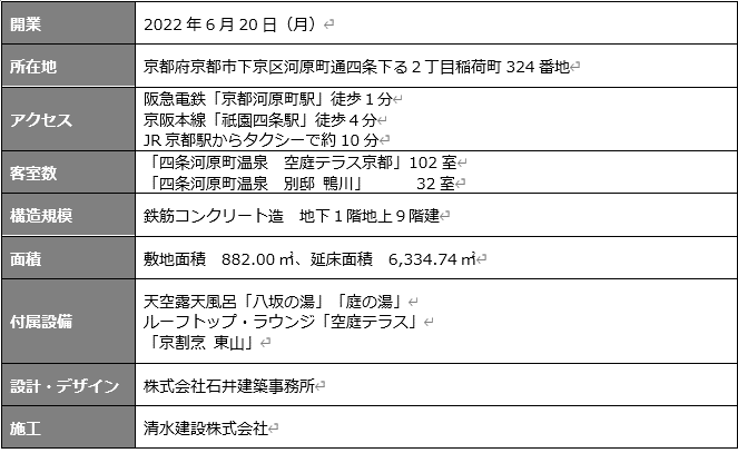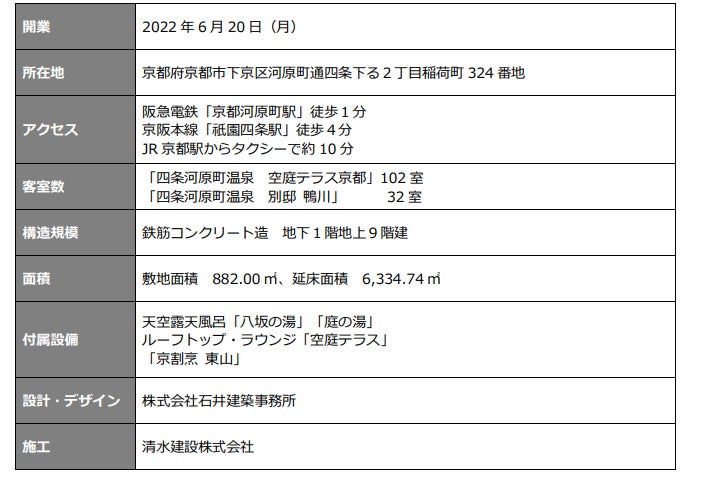 『四条河原町温泉 空庭テラス京都』『四条河原町温泉 別邸 鴨川』2022年6月20日開業のお知らせ