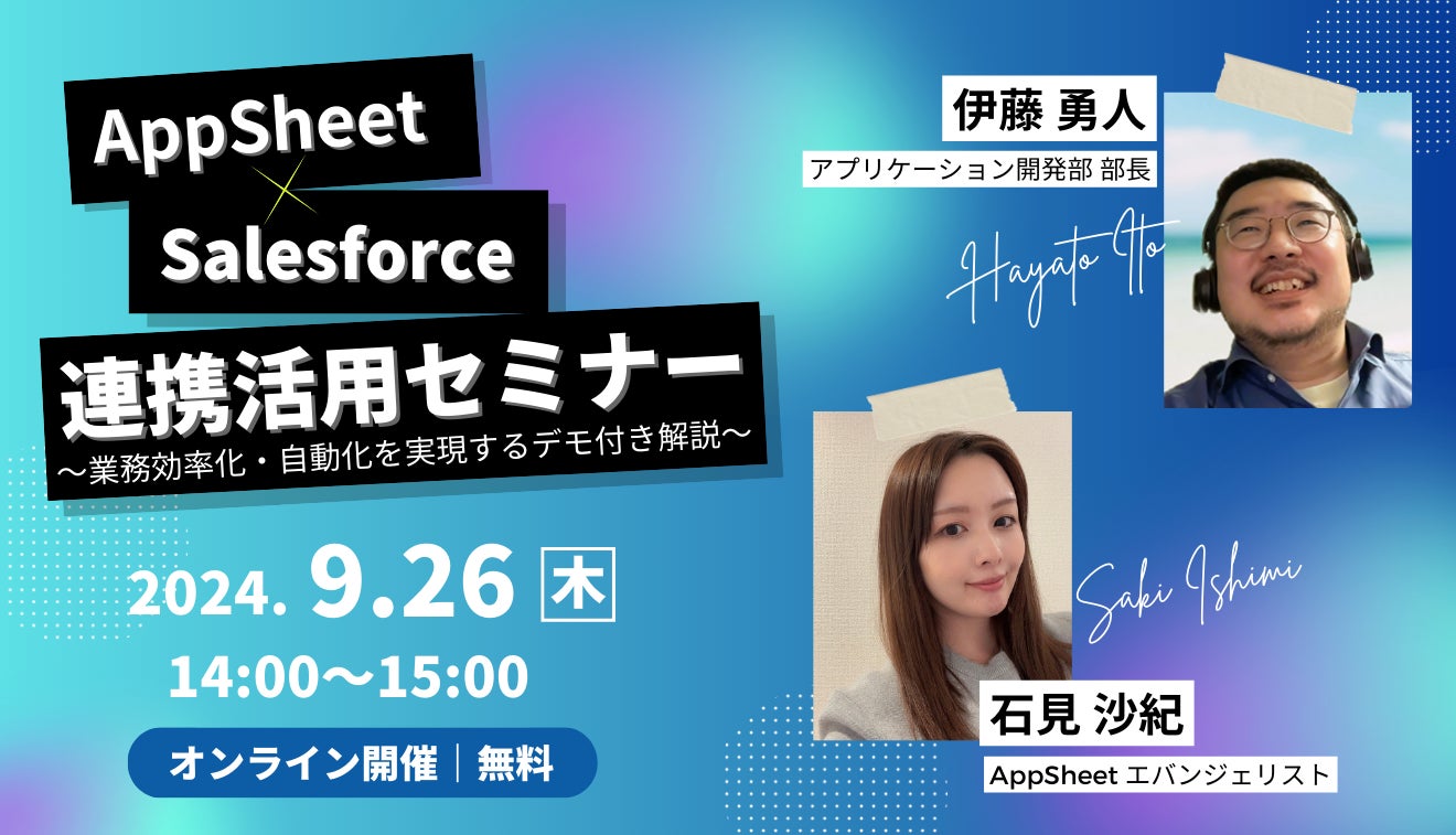 ■9/26(木) 14:00~15:00 オンライン開催 「AppSheet × Salesforce 連携活用セミナー ~業務効率化・自動化を実現するデモ付き解説~」