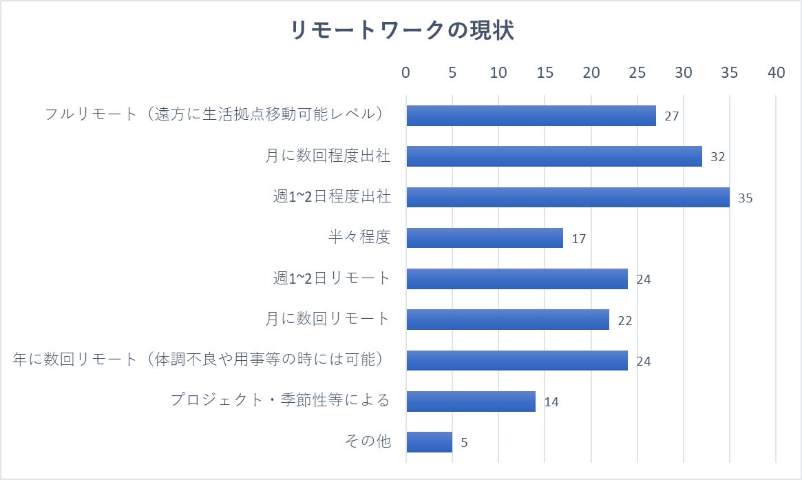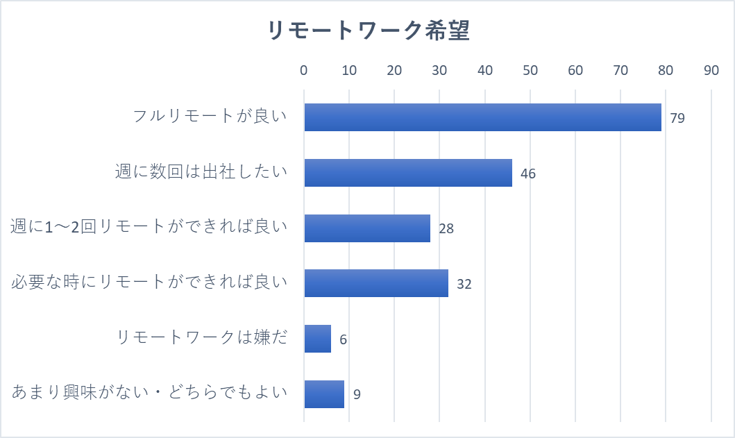 ただし、「フルリモートが良い」と回答した方以外の約60%はある程度の出社も望んでいると言えます。