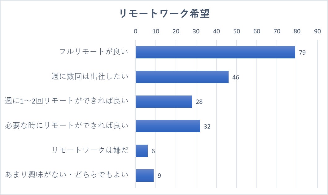 また詳細版の記事(https://tecgate.selva-i.co.jp/blog/1452/)には年収とリモートワークや年齢とリモートワーク希望といった角度でのアンケート結果も載せておりますので、是非ともこちらご覧ください。