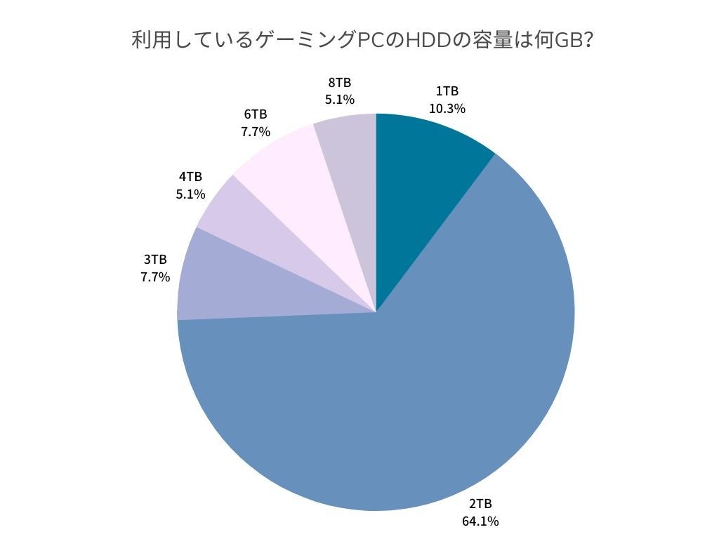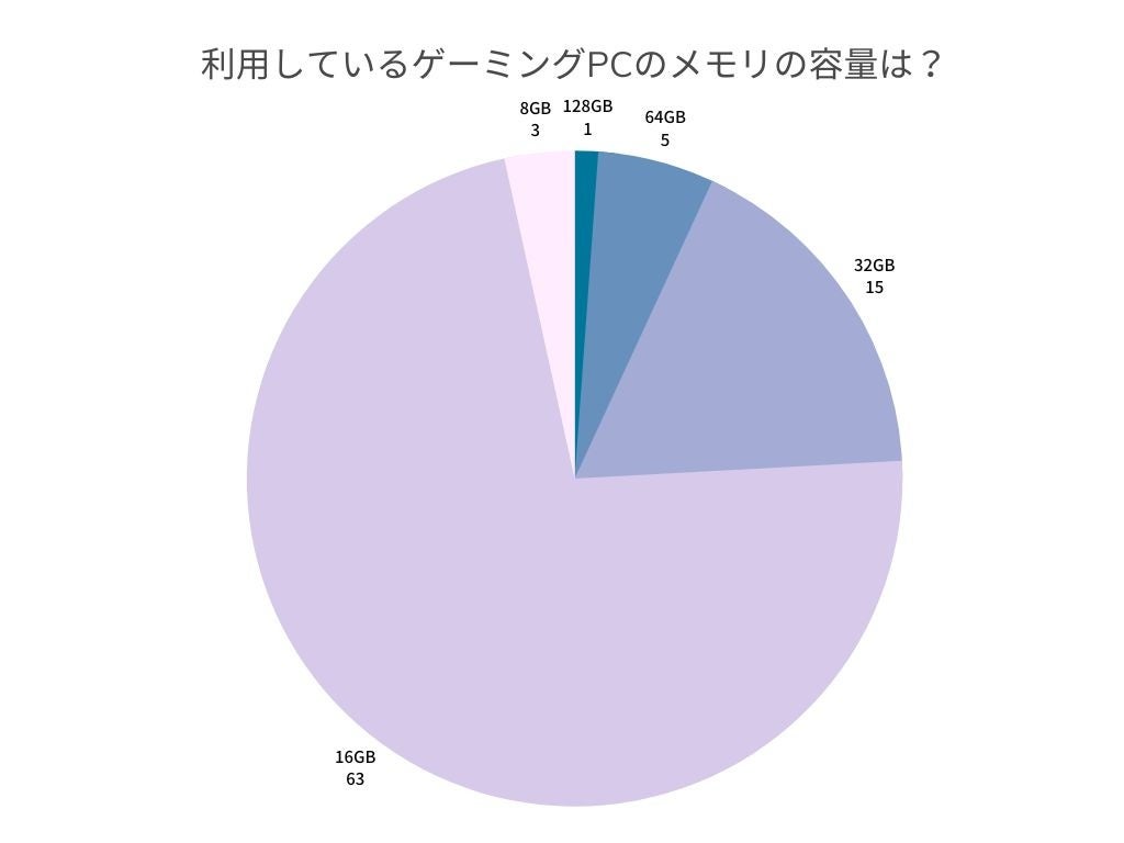 一般的なメモリ容量である16GBがもっとも多く、用途にあわせて32GBや64GBにカスタマイズする方がいることが本アンケートで分かりました。