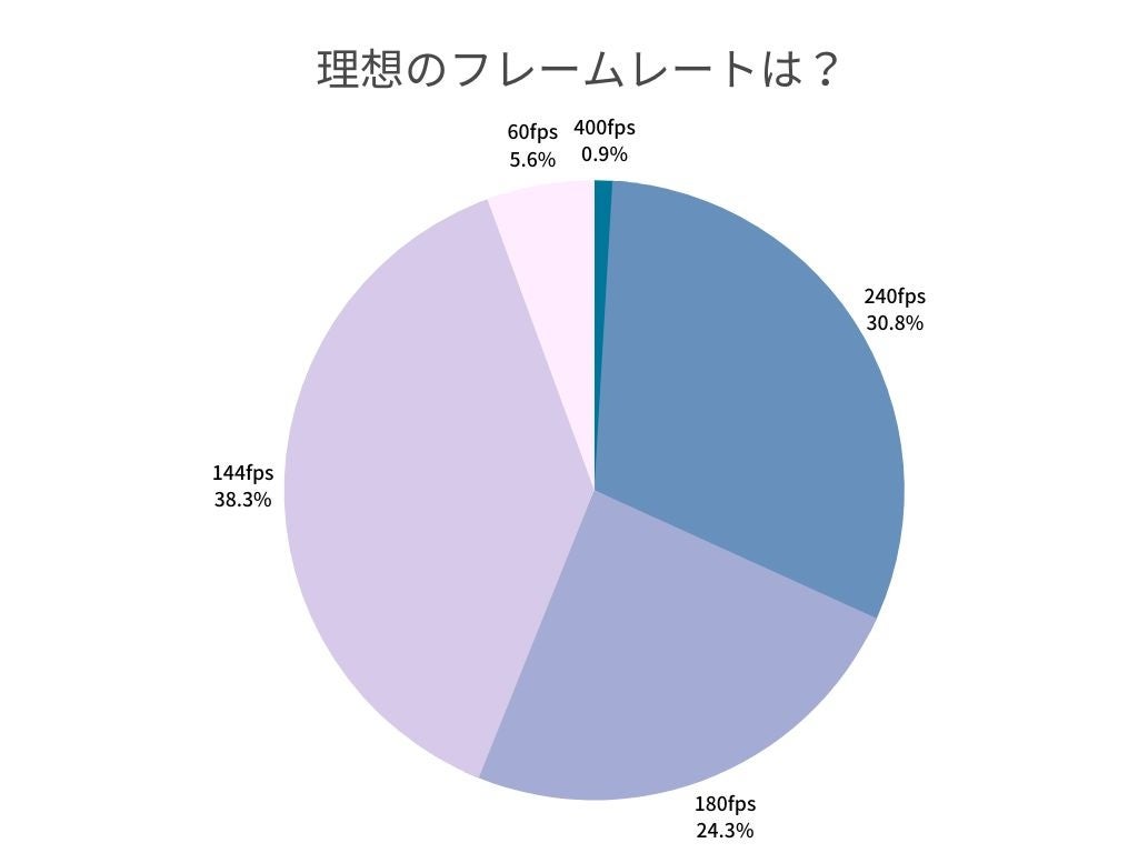ミドルクラスのゲーミングPCで出せる144fpsがもっとも人気が高く、次いで本格的にFPSゲームなどを楽しみたい方に人気な240fpsが希望される傾向にあることがわかりました。