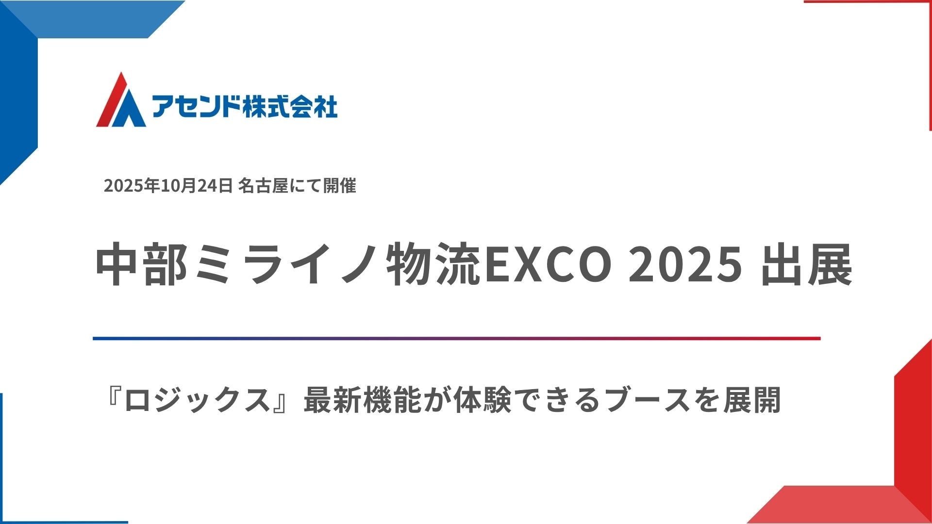物流DXを推進するアセンド株式会社(本社:東京都新宿区、代表取締役:日下瑞貴、以下「当社」)は、2025年10月24日(金)に名古屋で開催される「中部ミライノ物流EXCO 2025」に出展いたします。