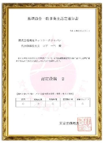 この認定は、女性活躍推進法に基づいた行動計画の策定・届け出を行った企業のうち、女性活躍推進に関する取り組みの実施状況が優良な企業を厚生労働大臣が認定する制度です。認定項目5項目のうち、「採用」、「継続就業」、「労働時間の働き方」、「多様なキャリアコース」の4項目の基準を満たし、このたび、2つ星(2段階目)に認定されました。