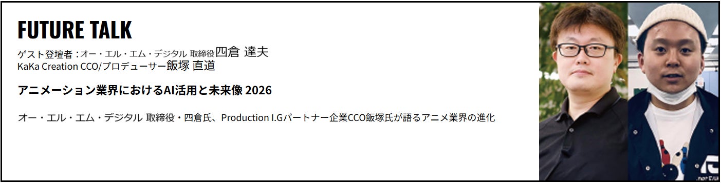アニメ制作の研究開発を担う四倉氏と、制作現場の最前線でAI活用を推進する飯塚氏が、AIが変えるアニメ制作の現在と、2026年以降の業界の未来像について語る特別講演。