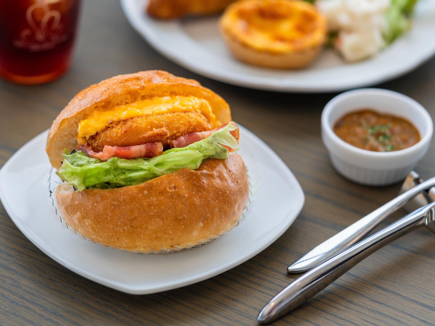 朝食は、パンの世界大会で3位を受賞した中西智彦シェフが手掛けた焼き立てパンをご提供。焼き立てパンの香ばしい香りに包まれ、心地よい朝のひとときをお楽しみください。店内でゆっくりお召し上がりいただけるのはもちろんテイクアウトも可能ですので、インフィニティ温泉プールデッキなどの屋外や芝生エリアでピクニック気分を楽しむこともできます。