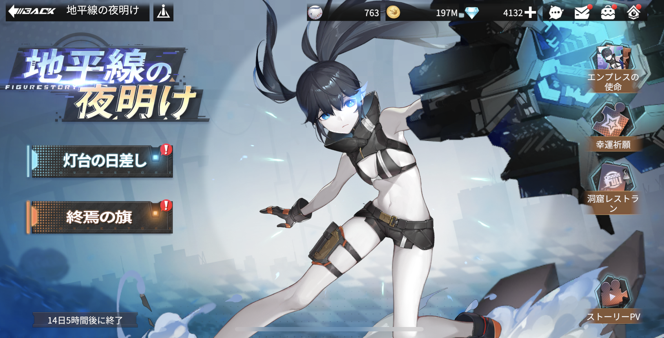 内容:メインイベント「地平線の夜明け」は、シナリオステージと、チャレンジステージで構成されています。各ステージをクリアすると、本イベント専用ミッションから報酬を受け取れます。さらに手に入れたアイテムで、Bingoイベントへの参加や、専用ショップでコラボレーション限定家具などとの交換ができます。エンプレス[ブラックロックシューター]とデッドマスターが迷い込んだフィギュアの世界で、どんなストーリーが繰り広げられるのかご期待ください!