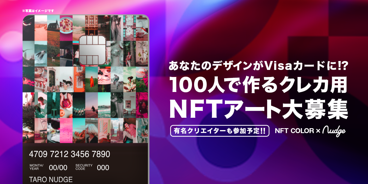 日本におけるチャレンジャーバンクを目指すナッジ株式会社(本社:東京都千代田区、代表取締役:沖田 貴史、以下「ナッジ」)は、合同会社NFT COLORと合同で、複数のNFTクリエイターのデザインをクレジットカードにする「NFTクリエイターカードデザインコンテスト」を2022年10月28日(金)から実施することをお知らせいたします。