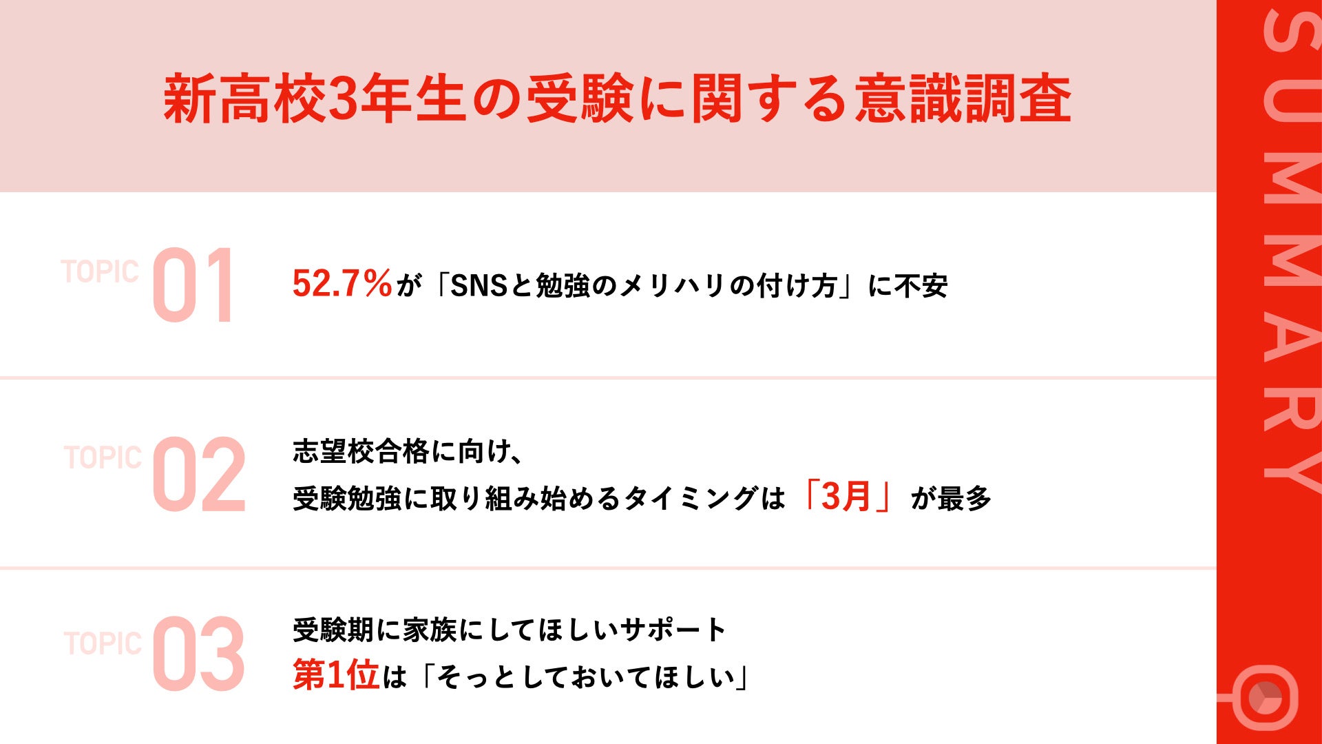 【新高校3年生に聞いた!受験に対する本音】半数以上が「SNSと勉強のメリハリの付け方」に不安 受験へのイメージ、「ずっと勉強してなければならない」「今後の人生に関わる大イベント」などの声