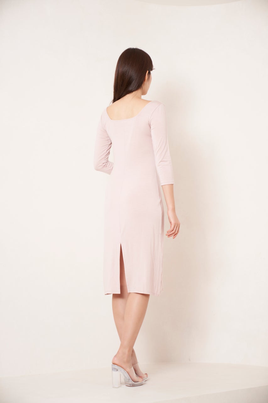 袖は8分丈、着丈は膝下のスリップタイプにすることでインナーとして美しく仕込むことができ、エレガントながら寒さ対策もできるROSIERらしいアイテムに仕上げました。