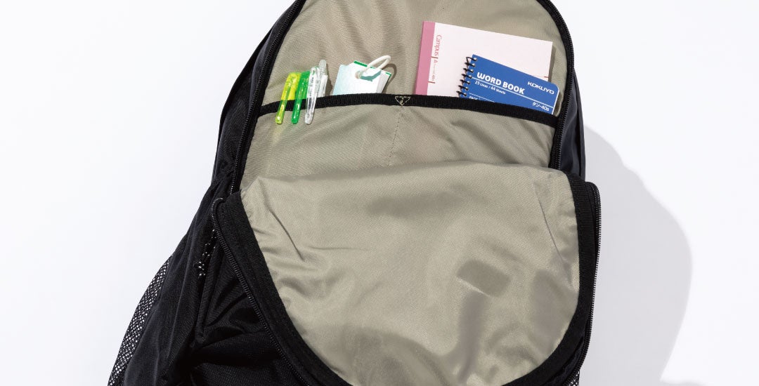 生地表面は撥水機能のオムニシールドを搭載し、少々の雨や汚れにも強く、さらに撥水ジッパーを採用しているので天候を気にせずデイリーユースできます。またメインコンパートメントには15インチまで対応可能なクッションPCスリーブを備え、背面サイド部分には目立たずに外から直接アクセスできるセキュリティーポケットも完備。財布やパスを収納しやすく、新生活での通勤、通学にも使い勝手の良い仕様になっています。