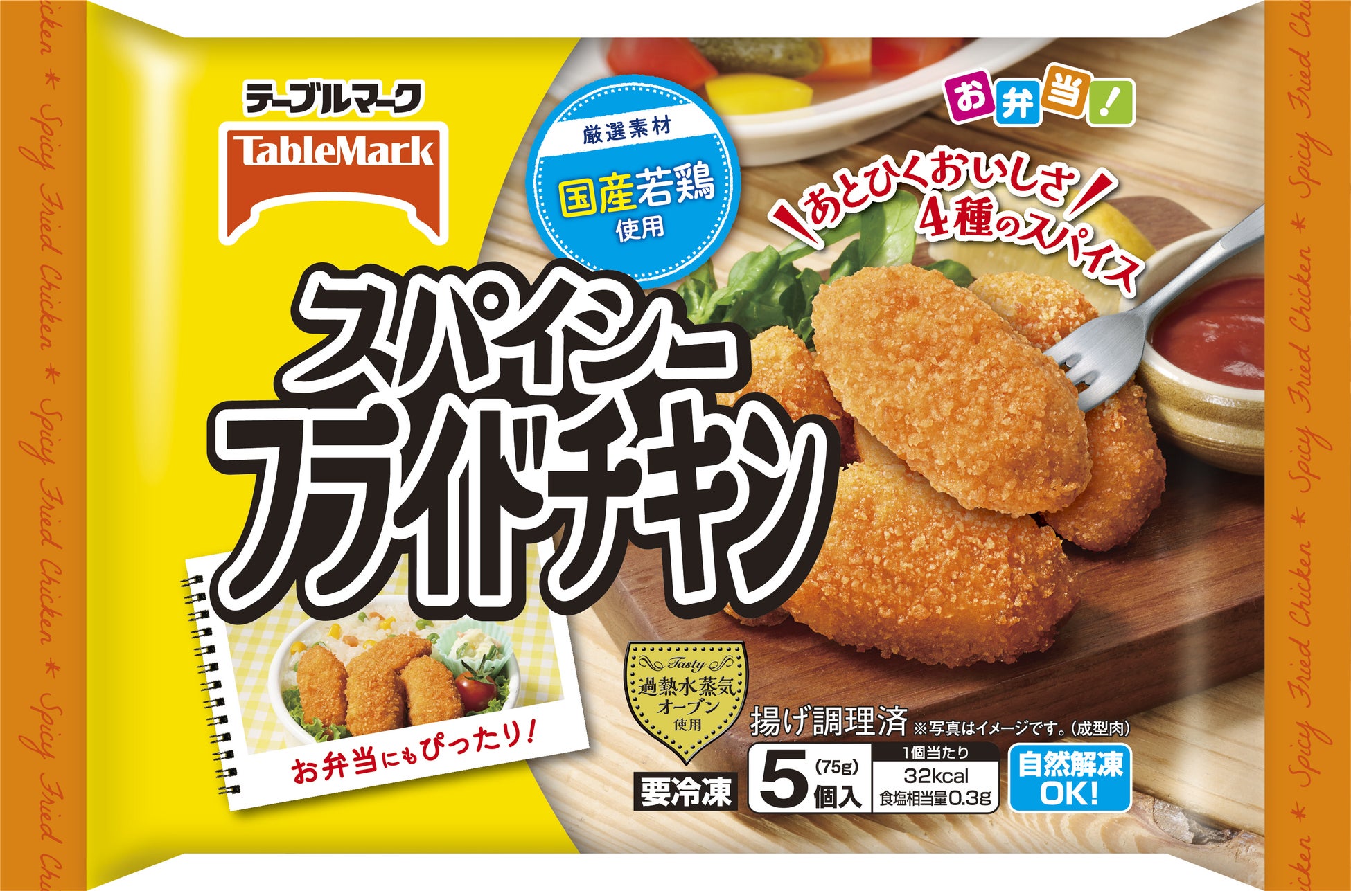 国産若鶏のむね肉に厳選スパイスをブレンドした衣をまとわせカラッと揚げました。隠し味にコンソメやウスターソースを入れることで辛さをやわらげ食べやすい一品に仕上げました。
