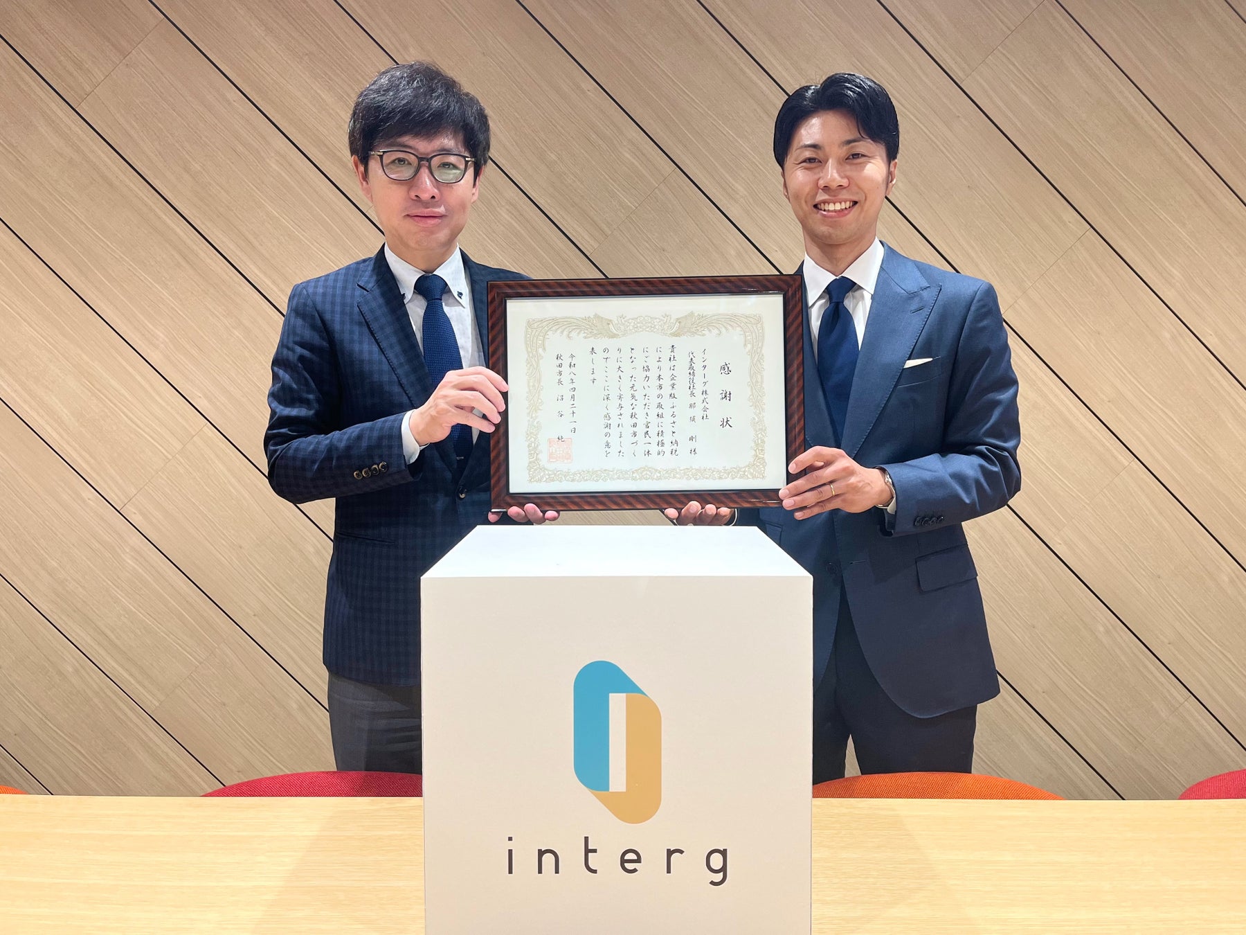 デジタルメディアの運営などを手掛けるインターグ株式会社(本社:東京都港区、代表取締役社長:那須 剛、以下、インターグ)は、企業版ふるさと納税制度(地方創生応援税制)を活用し、秋田市が推進する「若い世代の結婚・出産・子育ての希望をかなえる事業」へ寄付を行いました。これに対し、同市より感謝状が授与されました。