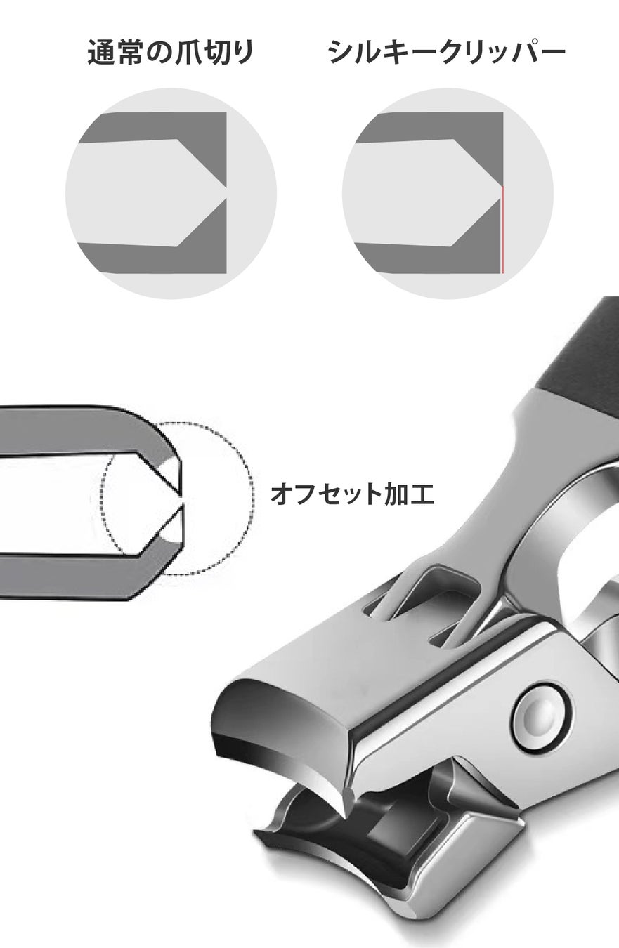 その革新的なデザインと卓越した機能性により、通常の爪切りでは難しかったケアを可能にします。爪が飛び散ることなく、バリができにくく爪をサクッと切れるのが最大の特徴です。