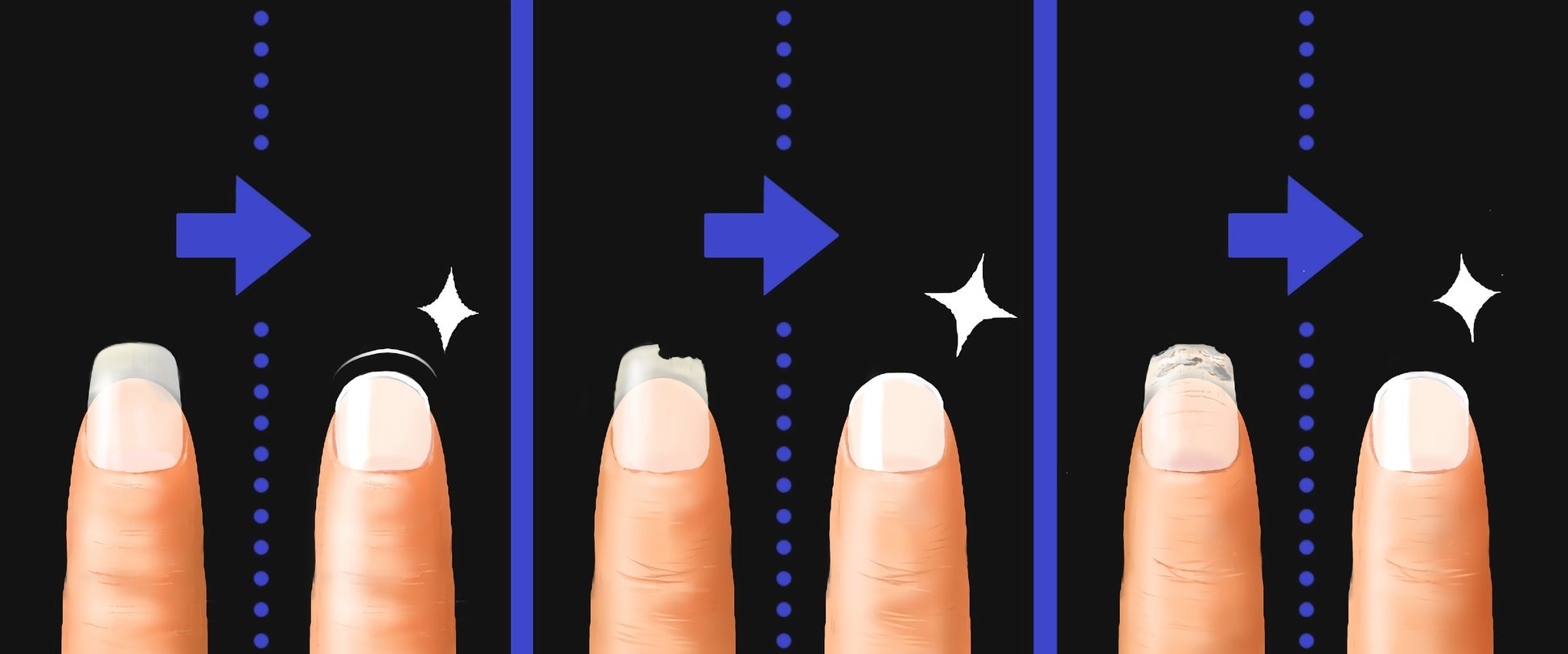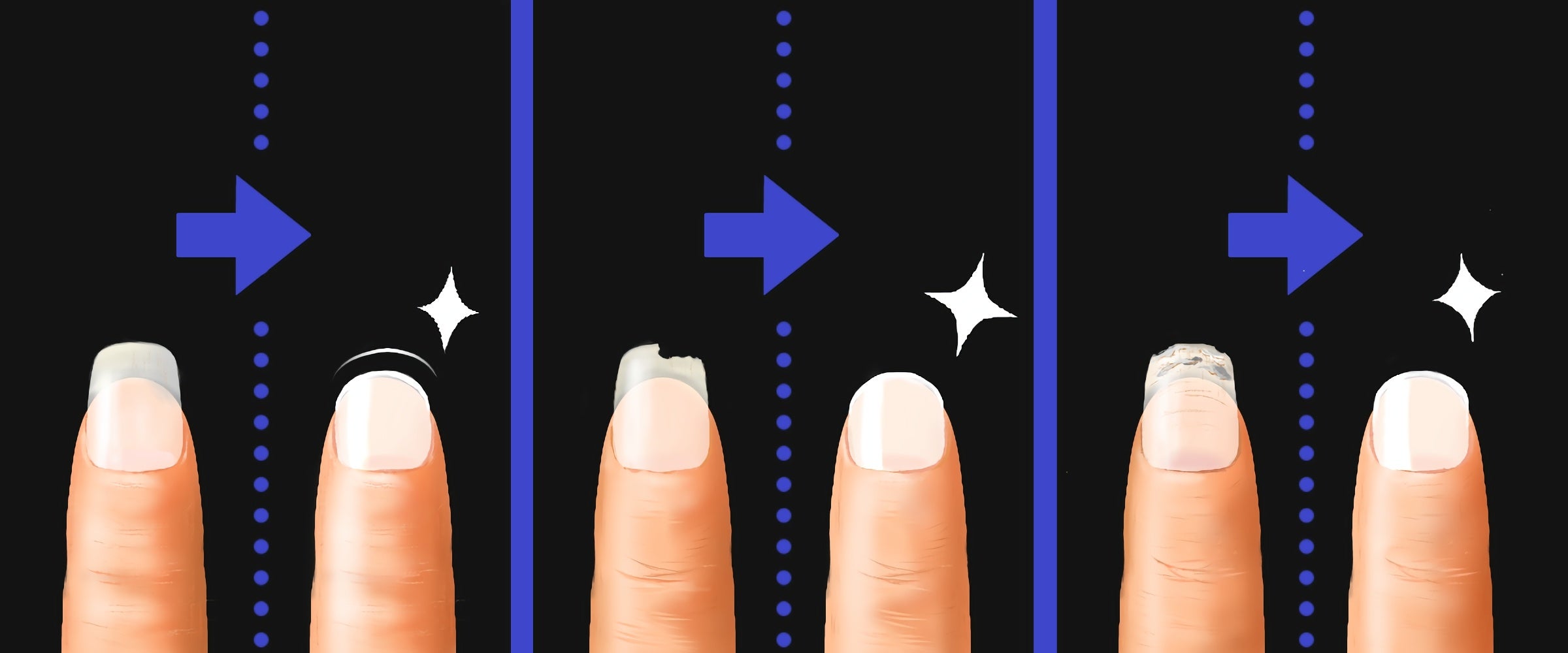 専用ネイルファイルを使い断面をなめらかに仕上げる事で二枚爪を防ぐこともできます。