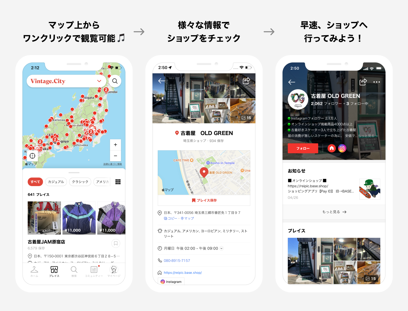 ―プレイス機能の充実によりさらに簡単にヴィンテージ・ショップや古着と出会える!―