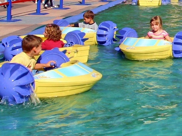 みんなに大人気の水上アトラクション「ラグーンウォーターパーク」が登場!ハンドルを回してパドルボートを