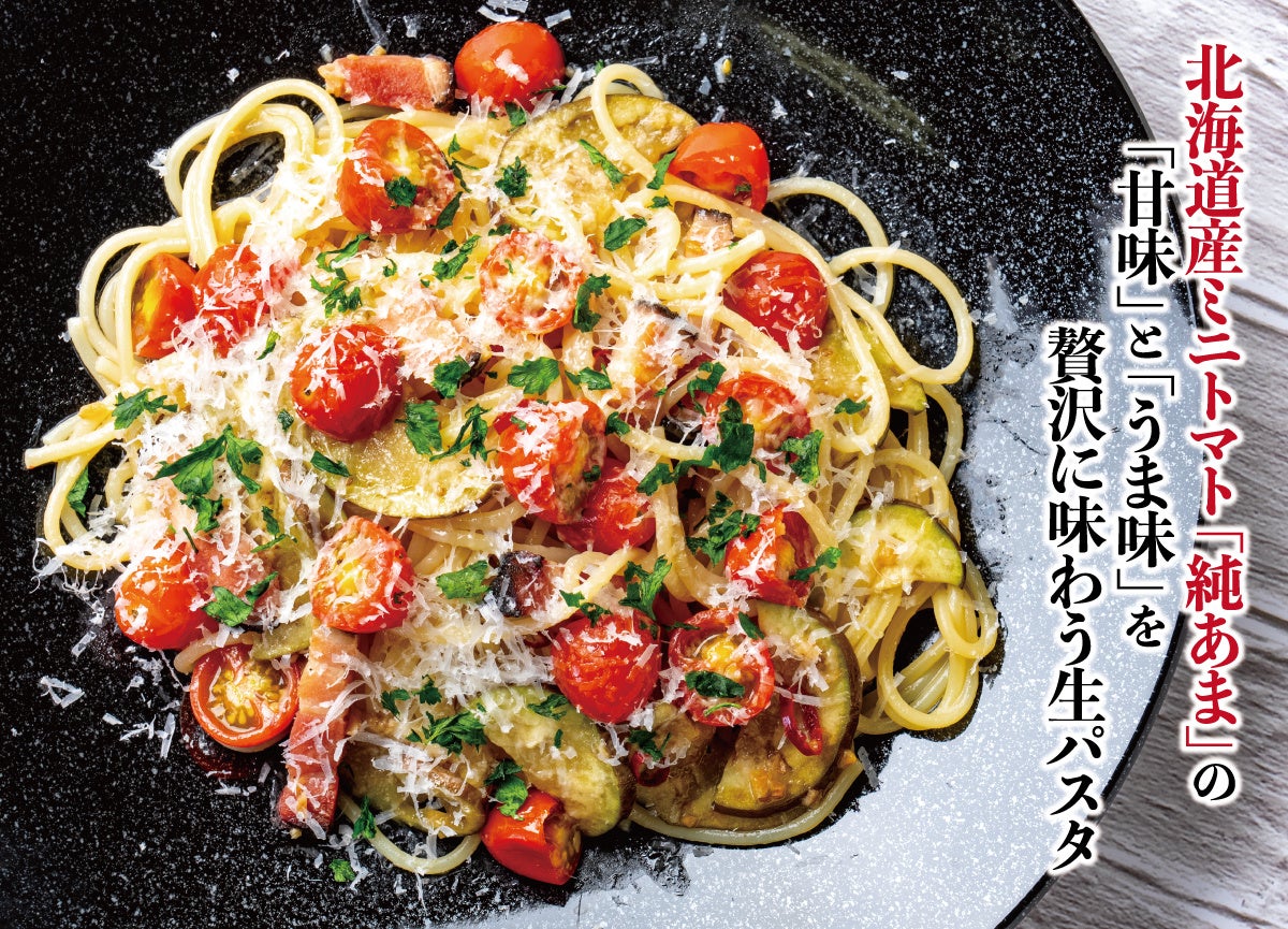食べたらわかる!まるでフルーツ!平均糖度8℃以上の北海道産プレミアムトマト「純あま」と水茄子で夏の身体に活力を!北海道の生パスタ専門店「麦と卵」から期間限定メニュー登場!夏の身体に美味しい活力を!