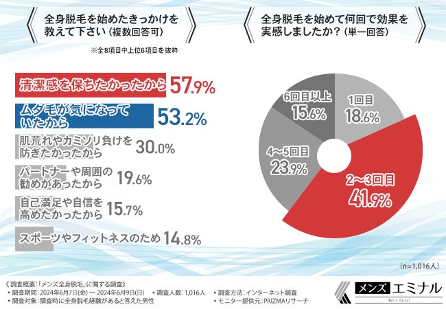 メンズ全身脱毛を始めるきっかけは、約6割が「清潔感を保つため」脱毛効果を感じる施術回数とは…?