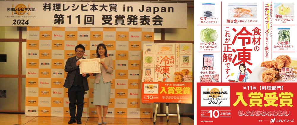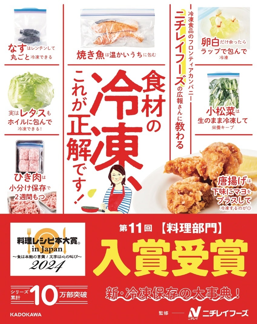 株式会社ニチレイフーズ(代表取締役社長:竹永 雅彦)は、ニチレイフーズ広報部が監修した『ニチレイフーズの広報さんに教わる 食材の冷凍、これが正解です!』(株式会社KADOKAWA発行)が「第11回料理レシピ本大賞 in Japan」の料理部門で入賞したことをお知らせいたします。