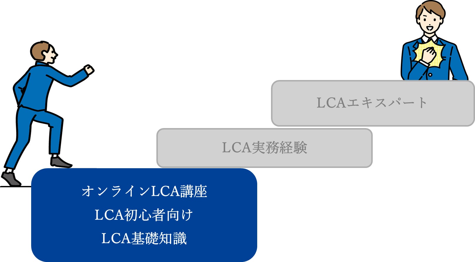 しかしながら一方で、LCAを短期間に高度に習得し実業に活かすことは、習得時間の確保や経済性の面から困難であり、初歩的な段階から一歩一歩学べるコースを望む声もいただいてまいりました。
