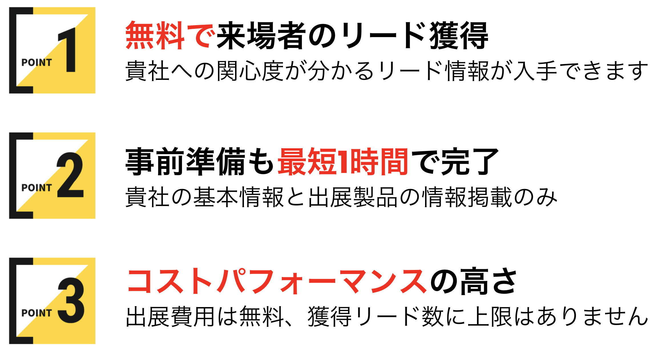 ※展示会の趣旨に合致しないと当社が判断する場合等は、出展をお断りする場合がございます。