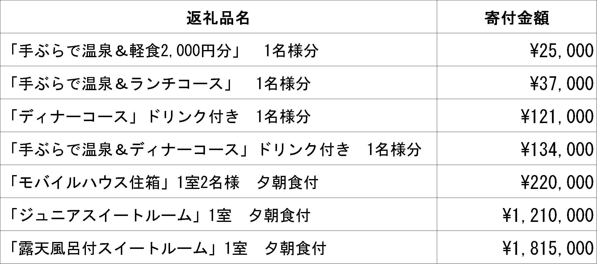 新潟県三条市(市長:滝沢 亮)のふるさと納税に、株式会社スノーピーク(本社:新潟県三条市、代表取締役 会長兼社長執行役員:山井 太氏)が運営する浴・食・泊の自然を感じる複合型リゾート「Snow Peak FIELD SUITE SPA HEADQUARTERS」での温浴、食事、宿泊などを楽しめる体験型返礼品7種類を12月3日(土)12:00に出品いたします。楽天ふるさと納税、ふるさとチョイス、ふるなび、さとふるにて出品の予定です。