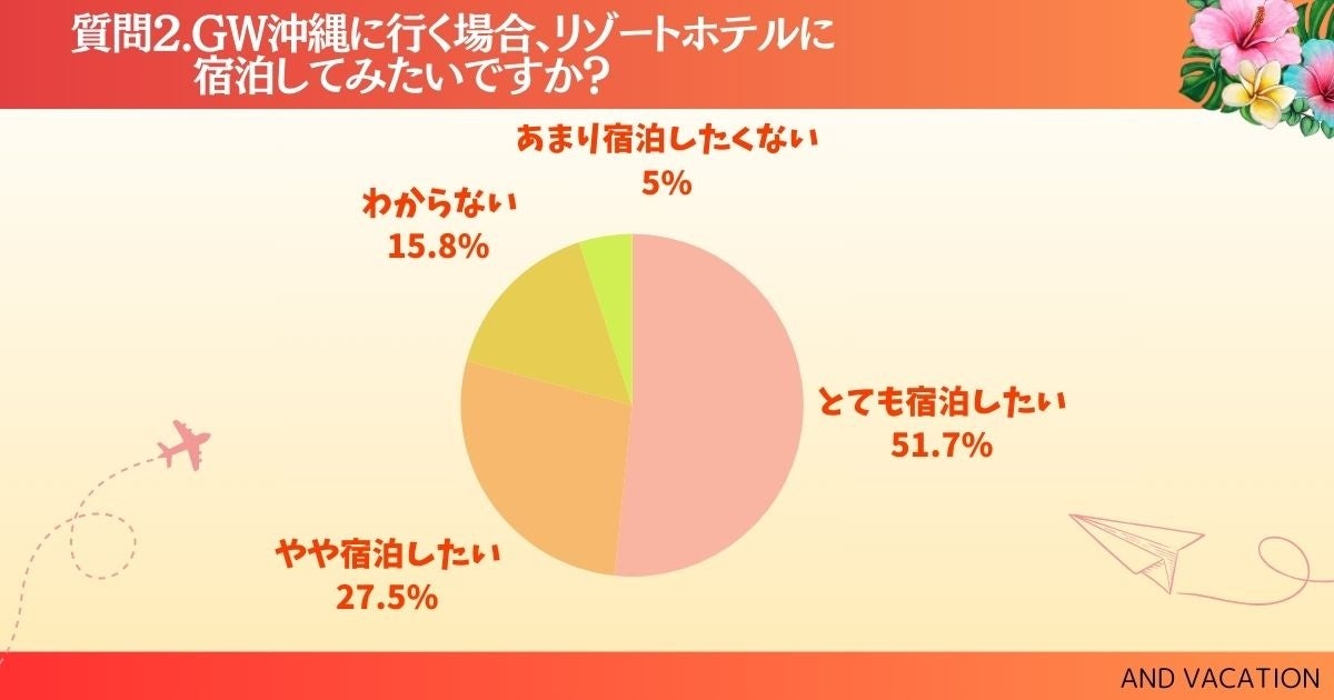 質問2.GW沖縄に行く場合、リゾートホテルに宿泊してみたいですか?