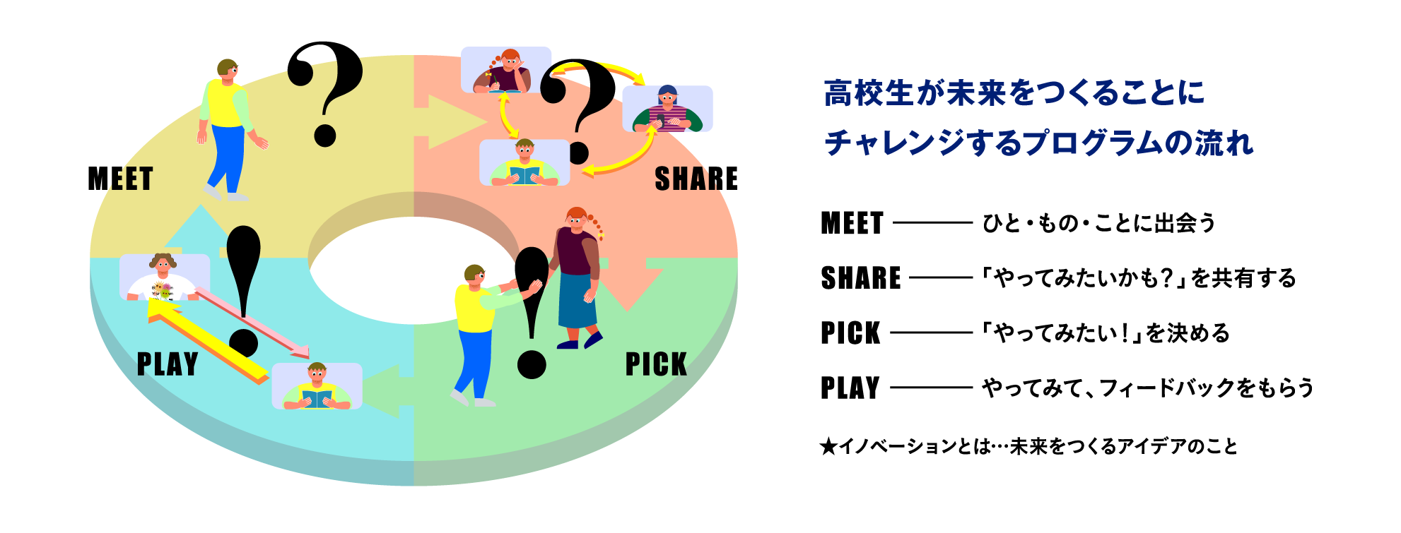 生まれ育った環境によって受けることのできる探究学習に格差が生まれる、いわゆる「探究格差」をなくすために、一般社団法人i.clubが全国各地で10年間、3,000名以上の中学生・高校生に探究学習を提供してきたノウハウを活かして考案・開発した、スマホやPC、タブレットで全国どこからでも参加できるU-18向け“オンライン探究プログラム”です。「innovationGO to」シリーズでは、企業とコラボレーションし、その企業の特性を活かしながら、高校生向けのオンライン探究プログラムを作成・提供します。