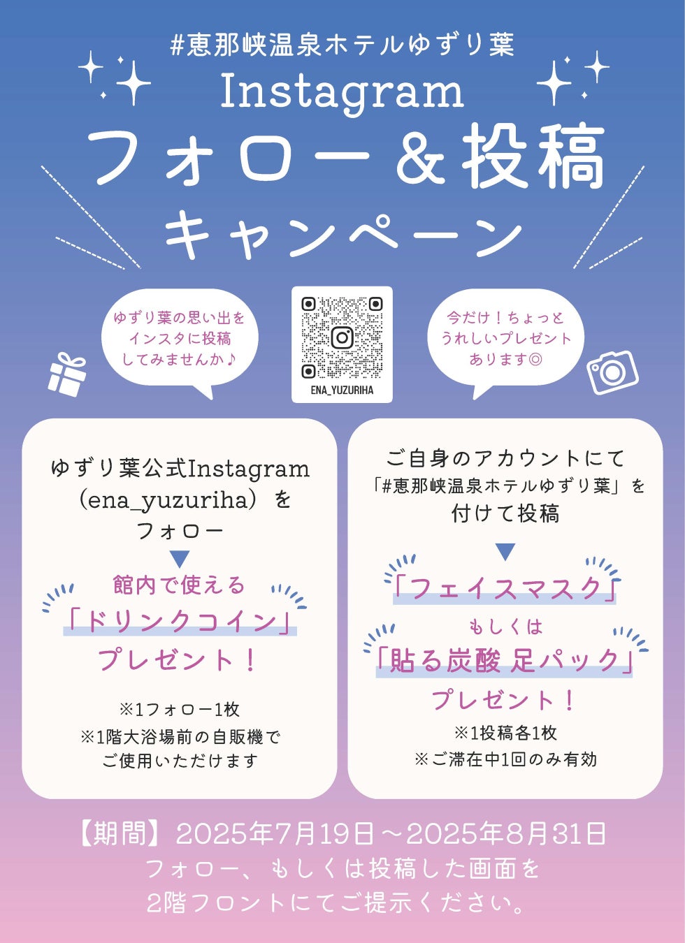 夏に実施します「フォロー&投稿キャンペーン」では嬉しいプレゼント付き♪