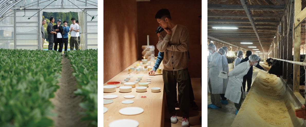 レジデンスSAGAに参加する料理人の方々は、滞在中、和多屋別荘を拠点に佐賀県のコーディネートにより食材や器の作り手との対話を通じてインプットを行います。また、県内の料理人や学生との交流、オリジナルの器制作など多彩なプログラムを通じて佐賀を体験していただきます。