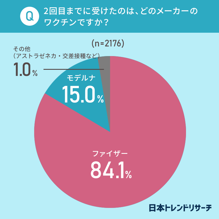 3回目接種を「受ける予定」と回答した方に、2回目までに受けたワクチンのメーカーを聞きました。