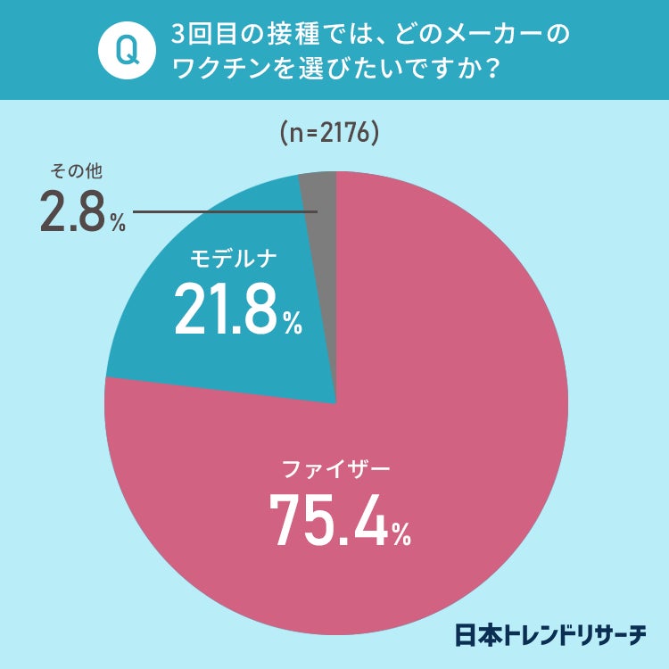 3回目接種についても「ファイザー」を選びたいと回答した方は75.4%でした。