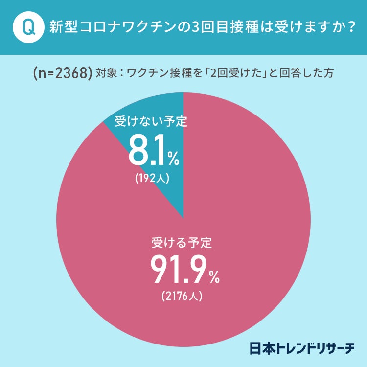 日本トレンドリサーチ(運営会社:株式会社NEXER)は、「新型コロナワクチン接種」に関するアンケートを実施し、結果をサイト内にて公開したので紹介します。