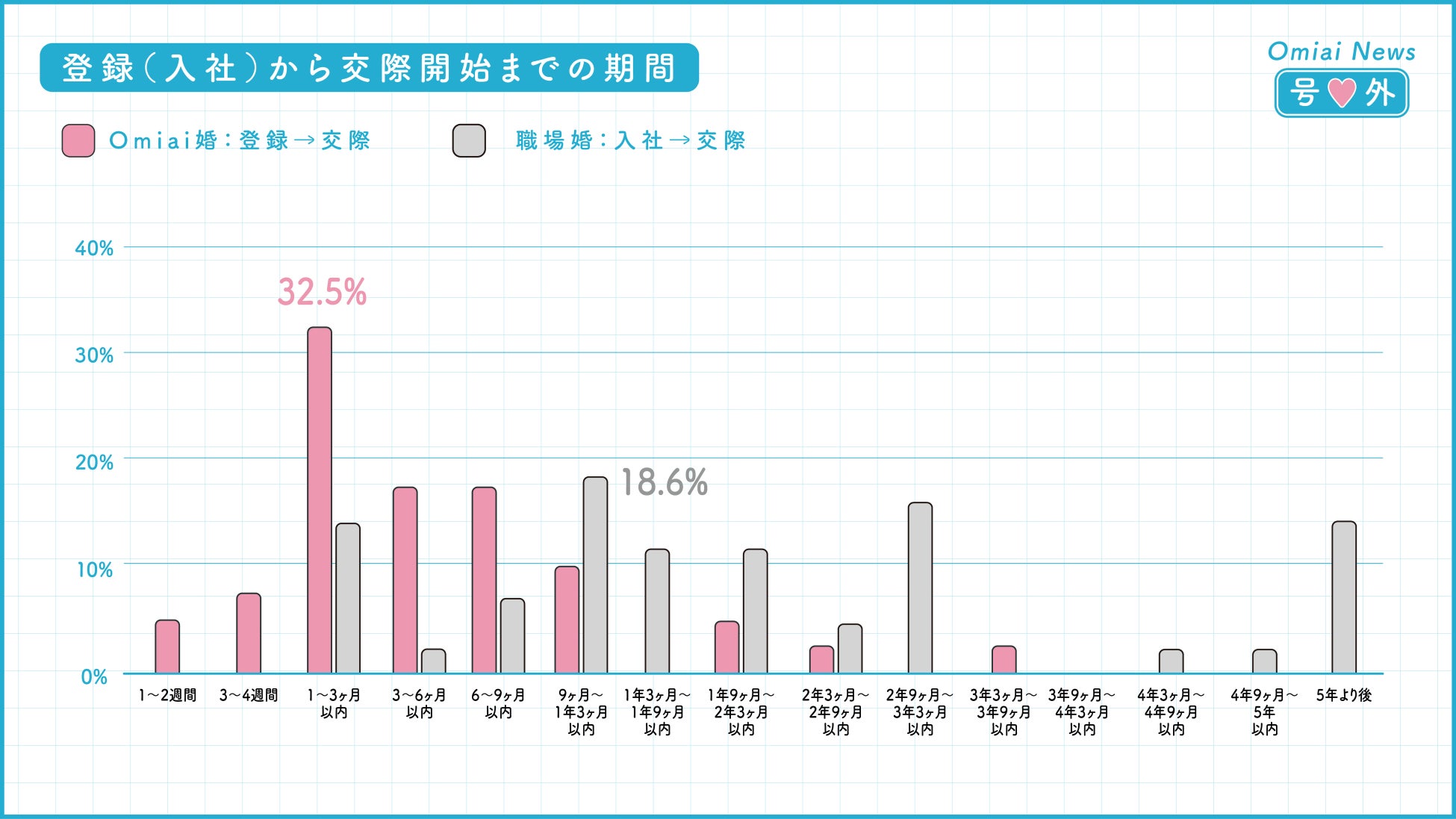 「交際」まで、Omiai婚「1〜3ヶ月」が約3割 職場婚が「9ヶ月〜1年3ヶ月」で約2割が最多