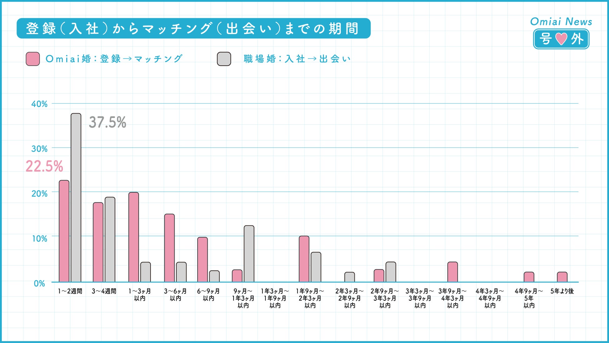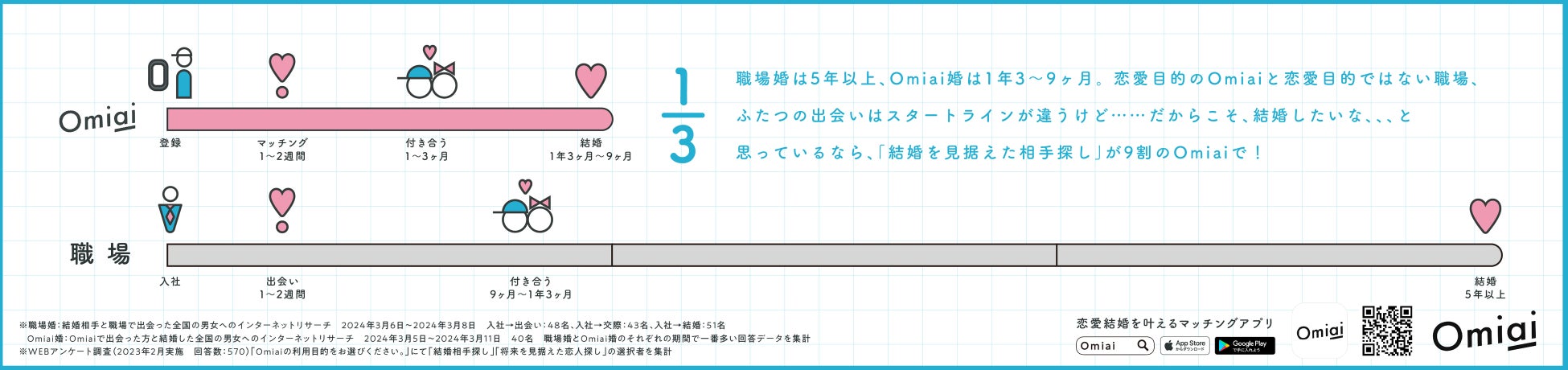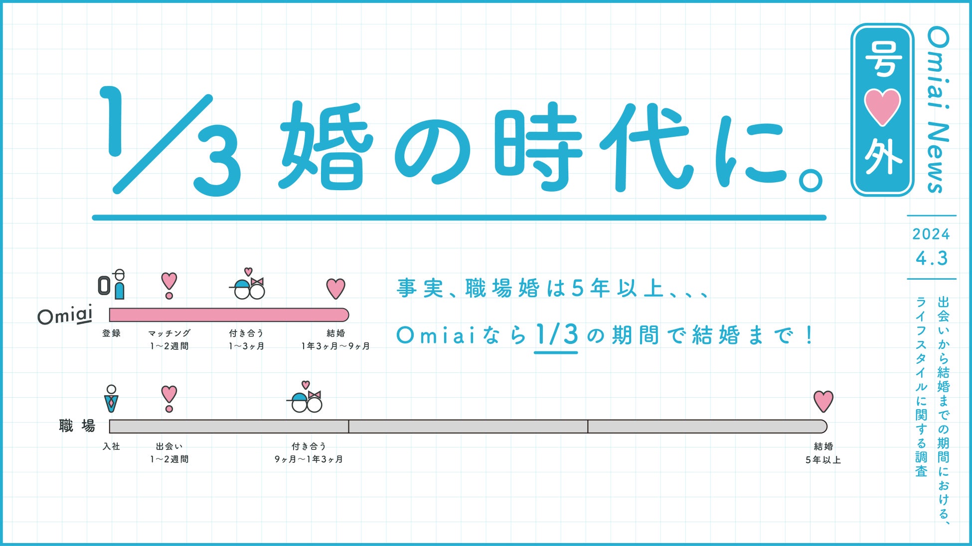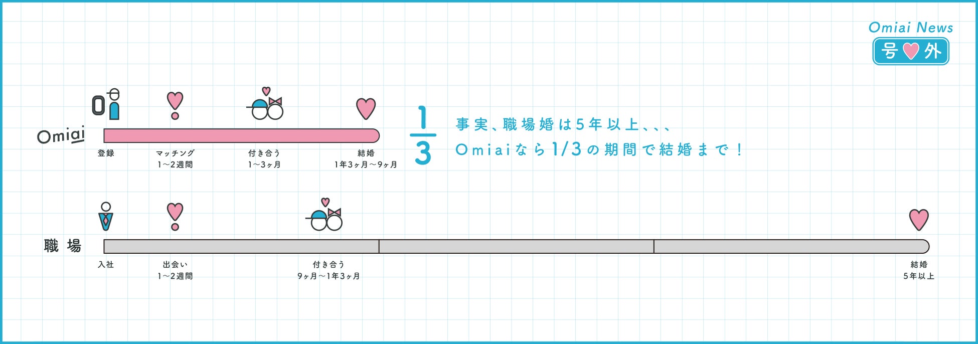 マッチングアプリ「Omiai」の登録から結婚までの期間は職場婚と比べ、1/3の期間で結婚