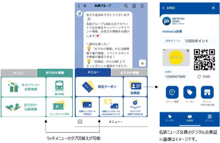 名鉄ミューズ会員は、LINEアカウントと名鉄ミューズ会員のID(名鉄ミューズIDまたはmanacaID)を