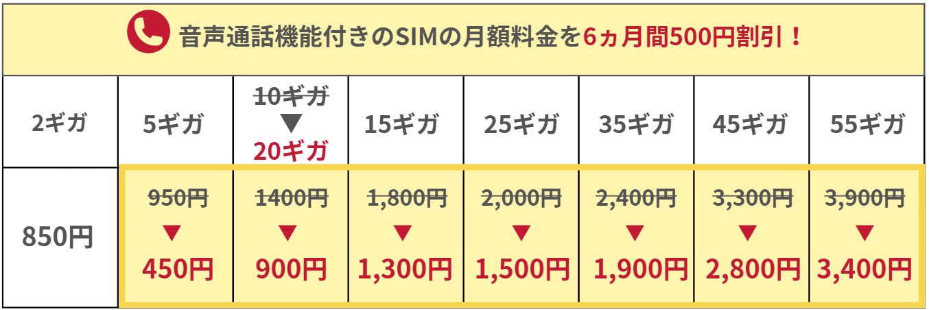 ・キャンペーンが適用中の回線を、2GBプランへ容量変更を行った場合、変更申込月の翌月から本特典は適用外となります。 ・キャンペーンが適用中の回線を、データSIM・SMS SIMに変更した場合、変更申込月の翌月から本特典は適用外となります。 ・本キャンペーンの内容は、予告なく変更する場合があります。 |