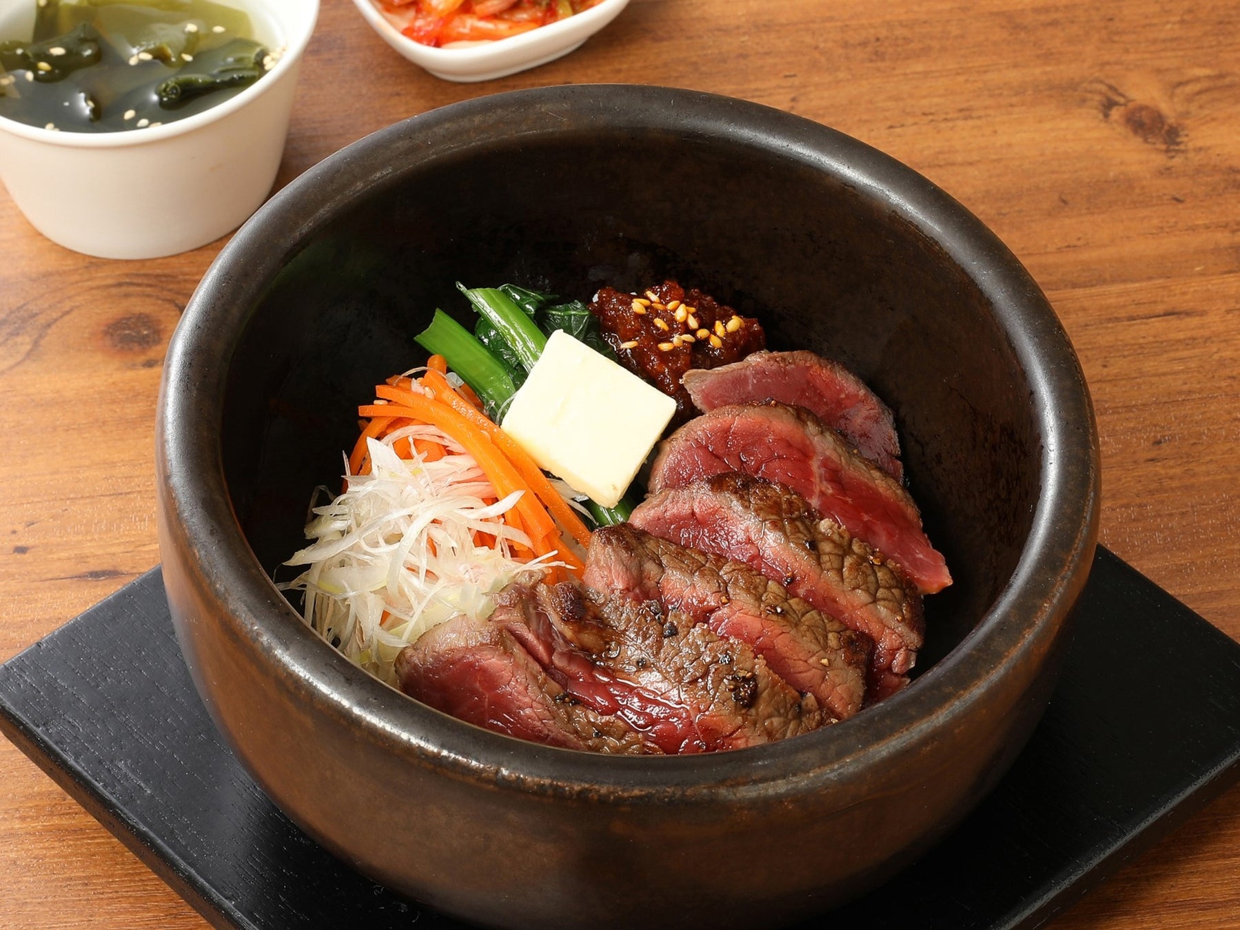 昨年好評を博した「牛ステーキ石焼ピビンバ」が一段と美味しくなって再登場!